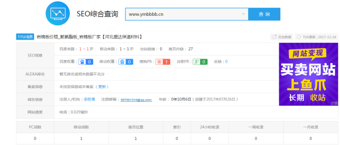 1. 网站域名没做301跳转,如果不做301跳转的话,网站的权重会分散到主域名和根域名上面,这样的话需要去浪费两倍的精力去优化一个关键词,建议将ymbbbb.cn跳转到www.ymbbbb.cn上。